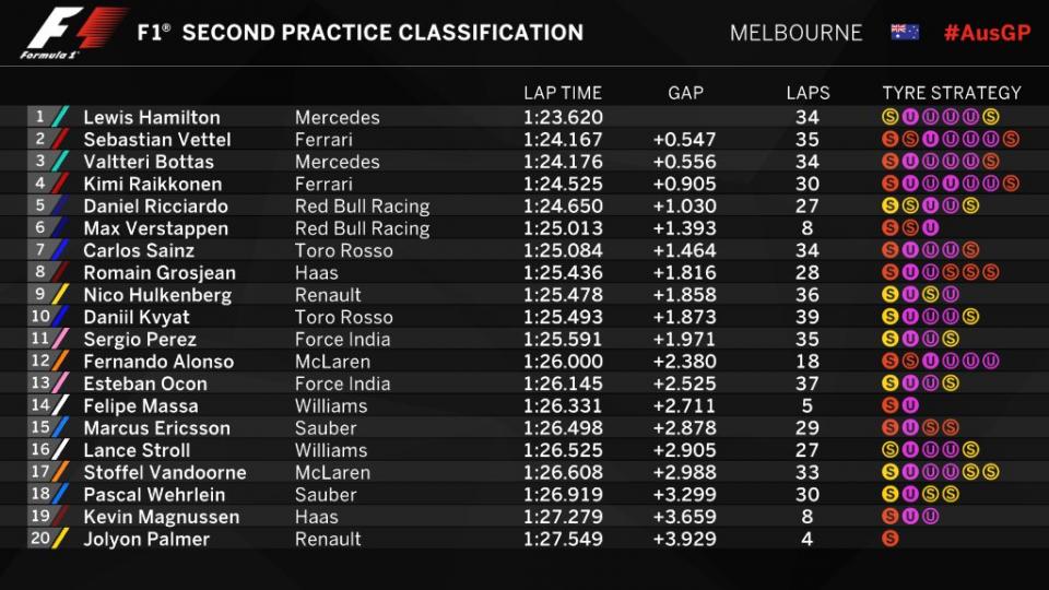 Και έτσι τα ξημερώματα (ώρα Ελλάδος) θα ξεκινήσει το πρώτο γκραν πρι της χρονιάς για τη F1, με τον Χάμιλτον στην 1η θέση. Ο δεύτερος οδηγός της Mercedes, ο Βάλτερι Μπότας ενώ στο πρώτο των δοκιμών έκανε τον 2ο καλύτερο χρόνο, στο επόμενο σκέλος δεν τα κατάφερε και αύριο θα ξεκινήσει από την 3η θέση.