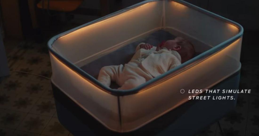 Σχεδιασμένη για να λειτουργεί με μία εφαρμογή smartphone, η κούνια αντιγράφει την κίνηση, τον ήχο ακόμα και το φωτισμό σε μία βόλτα με αυτοκίνητο. Από την έρευνα διαπιστώθηκε ότι οι γονείς χάνουν συνολικά 44 ημέρες ύπνο τον πρώτο χρόνο του ερχομού του παιδιού τους.