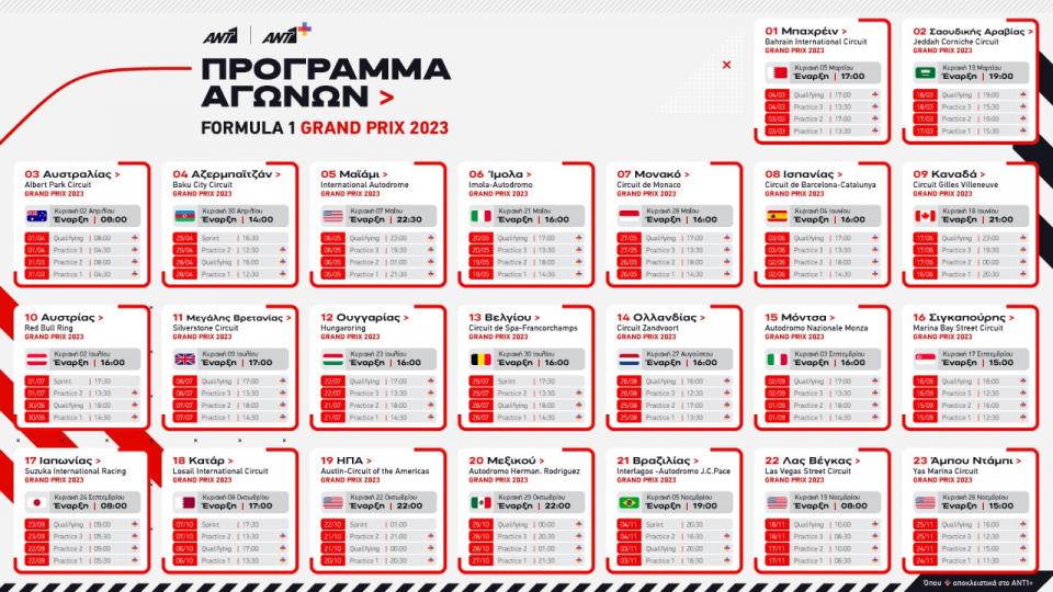 Παρασκευή 3, Σάββατο 4 και Κυριακή 5 Μαρτίου οι κινητήρες ανάβουν, τα κόκκινα φώτα σβήνουν και οι φίλοι της Formula 1 στην Ελλάδα δίνουν ραντεβού σε ΑΝΤ1 και ΑΝΤ1+ για το πρώτο συναρπαστικό τριήμερο της χρονιάς. Λάβετε θέσεις!