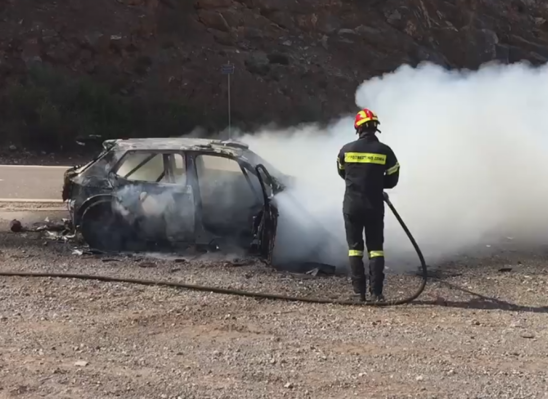 Ο πυροσβεστήρας τους δεν έφτασε. Περαστικοί οδηγοί έδωσαν τους δικούς τους. Αλλά ούτε αυτό έσωσε την κατάσταση. Σε λίγα λεπτά το αυτοκίνητο τυλίχθηκε στις φλόγες και καταστράφηκε ολοσχερώς.