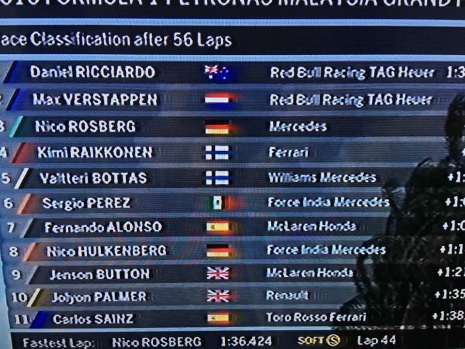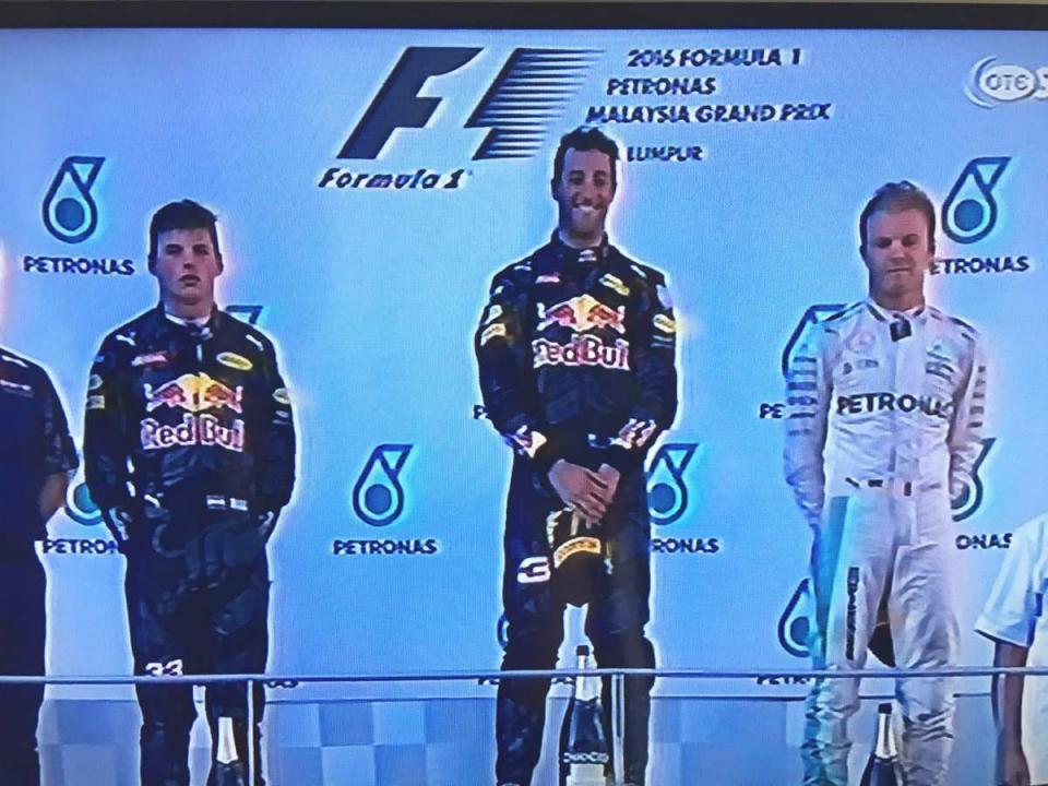 Κατήφεια και προβληματισμός στην Mercedes. Πανηγύρια στην Red Bull αφού έκανε στη Μαλαισία το 1-2. Ο νικητής Ντανιέλ Ρικιάρντο με το που έβγαλε το κράνος, γέμισε χαμόγελα. Πάντα είναι χαμογελαστός ο Ρικιάρντο. Αλλά αυτή τη φορά ήταν το κάτι άλλο. Οι τρείς πρώτοι είναι Ρικιάρντο, Βερστάπεν και Ρόρσμεργκ.