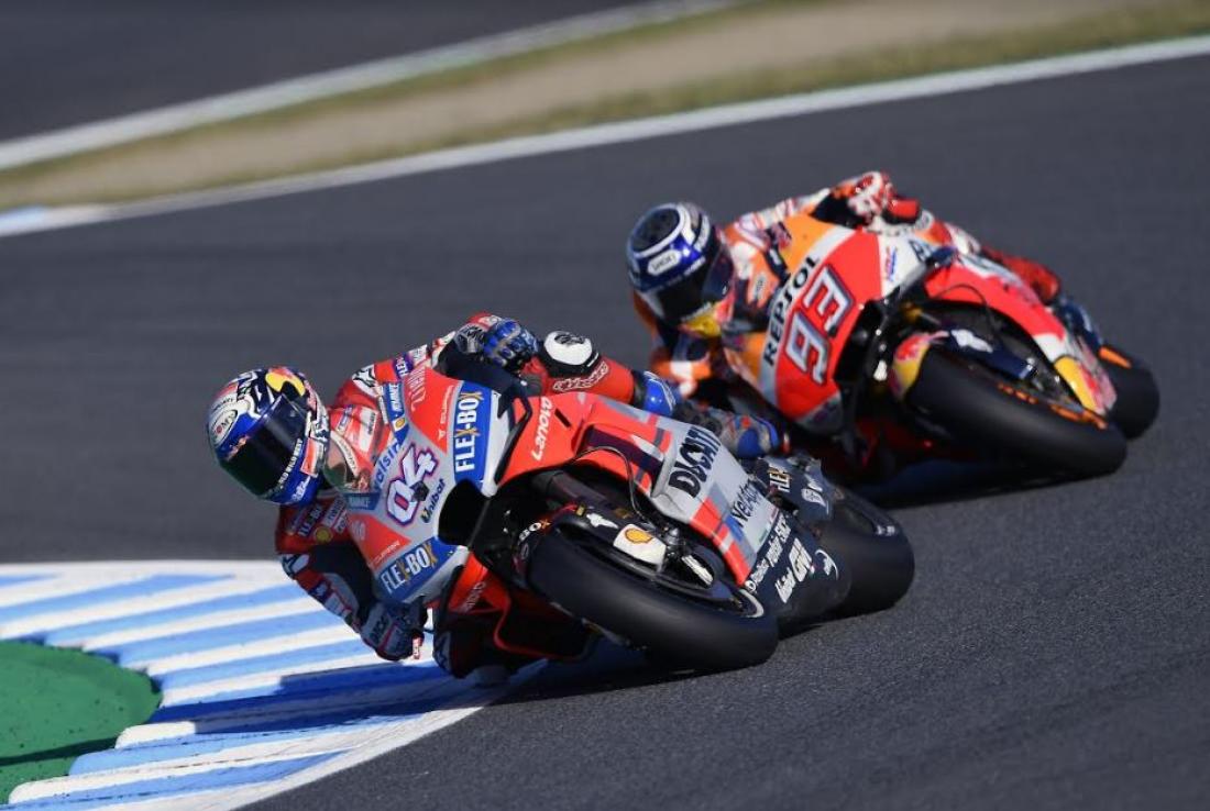 Η Ducati του Αντρέα Ντοβιτσιόζο για άλλη μια φορά λειτούργησε άψογα. Πολύ καλά ζυγισμένη και με άφθονη ισχύ, ήταν το ιδανικό «όπλο» στα χέρια του Ντόβι, ο οποίος προσπαθούσε να εξαντλήσει τις όποιες ελπίδες του για τον εφετινό τίτλο. Ο αναβάτης της Ducati είχε κάνει τον καλύτερο χρόνο στα δοκιμαστικά, εκκίνησε πολύ καλά και οδήγησε άψογα τον αγώνα για τους πρώτους 20 γύρους. Τότε, τον προσπέρασε ο Μάρκεθ και για το υπόλοιπο του GrandPrix, μέχρι και δύο γύρους πριν το τέλος, τόσο οι θεατές στην πίστα Motegi όσο και εκατομμύρια τηλεθεατές από τις οθόνες τους, απόλαυσαν μία επική μάχη, με τους δύο αναβάτες να πηγαίνουν κυριολεκτικά ρόδα-ρόδα.