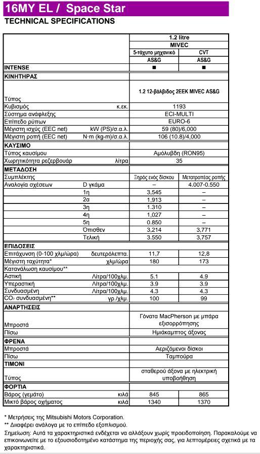 Το Space Star Intense MY16 MT πωλείται 12.990 ευρώ και το Space Star Intense MY16 CVT πωλείται 14.350 ευρώ.