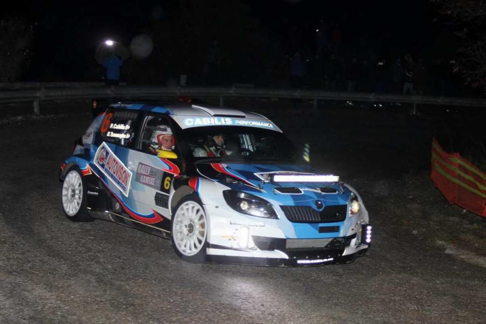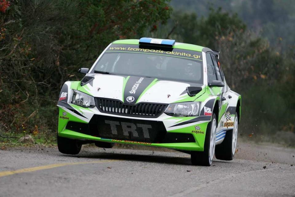 Οι Παναγιώτης Καμπύλης-Μάριος Τσαούσογλου (Skoda Fabia S2000, C1-S2000) εκμεταλλεύθηκαν την εμπειρία τους και τις δυνατότητες του τσεχικού αυτοκινήτου, σημείωσαν τον ταχύτερο χρόνο και στα δύο περάσματα από την Ειδική Διαδρομή και έχουν δημιουργήσει μια διαφορά 33 δευτερολέπτων από τους κοντινότερους διώκτες τους. Ο λόγος για τους Διαμαντή Τζαμπάζη-Γιώργο Πολυζώη (Skoda Fabia R5, C1-R5), οι οποίοι ατύχησαν με την επιλογή ελαστικών τους και στα δύο περάσματα, αφού στο μεν πρώτο η γόμα που επέλεξαν ήταν πιο μαλακή από όσο χρειαζόταν και στη συνέχεια έγινε το ακριβώς αντίθετο, αφού τα ελαστικά τους ήταν πιο σκληρά από όσο απαιτούσαν οι συνθήκες της διαδρομής. Στην τρίτη θέση, βρίσκονται οι Γιάννης Πλάγος-Αλκιβιάδης Ρέντης (Honda Civic Type-R, C3-A7) που προηγούνται ταυτόχρονα στην Κατηγορία F2 των δικίνητων αυτοκινήτων και είναι σταθερά μεταξύ των ταχύτερων πληρωμάτων, παρά το γεγονός πως οι γλιστερές συνθήκες δε βολεύουν τα δικίνητα αυτοκίνητα.