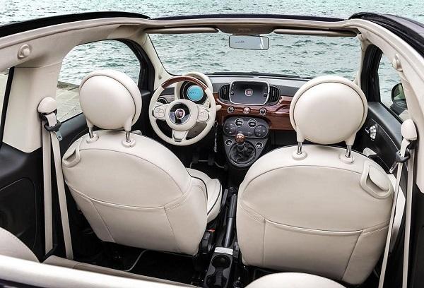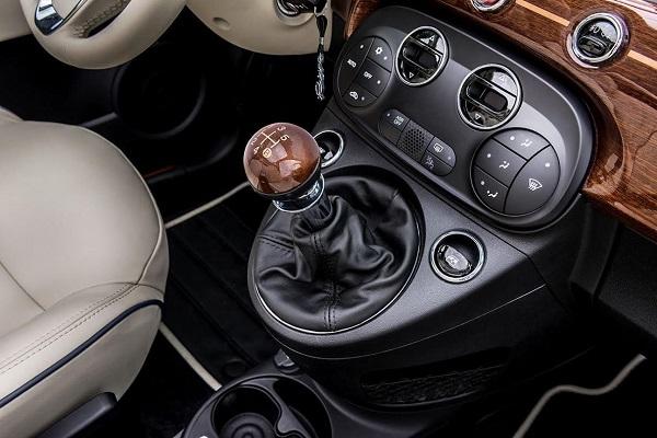 Στο εσωτερικό, διακρίνεις το ένθετο ξύλινο ταμπλό από μαόνι, που δίνει αίσθηση σκάφους. Άλλα σημεία που ξεχωρίζουν στο εσωτερικό του 500 Riva είναι τα ξύλινα μαρσπιέ θυρών και το ξύλινο πόμολο λεβιέ ταχυτήτων, καθώς και το κρεμ δερμάτινο σαλόνι.
