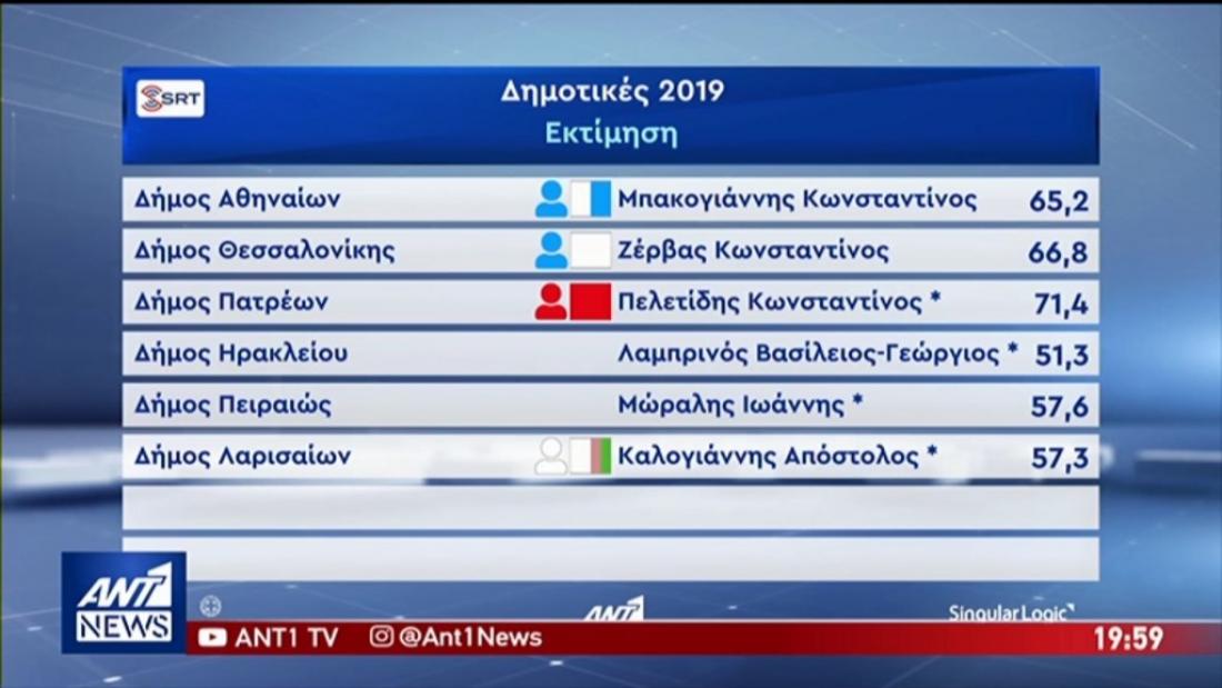 Εκλογές 2019: Δείτε την εκτίμηση της Singular logic για έξι μεγάλους δήμους της χώρας.