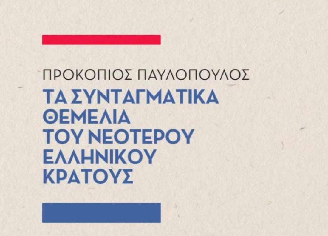 Κυκλοφόρησε το νέο βιβλίο του τέως Προέδρου της Δημοκρατίας και Επίτιμου Καθηγητή της Νομικής Σχολής του Εθνικού και Καποδιστριακού Πανεπιστημίου Αθηνών κ. Προκοπίου Παυλοπούλου, που έχει τίτλο «Τα συνταγματικά θεμέλια του Νεότερου Ελληνικού Κράτους», εκδ. «Ευρασία», σελ. 223.