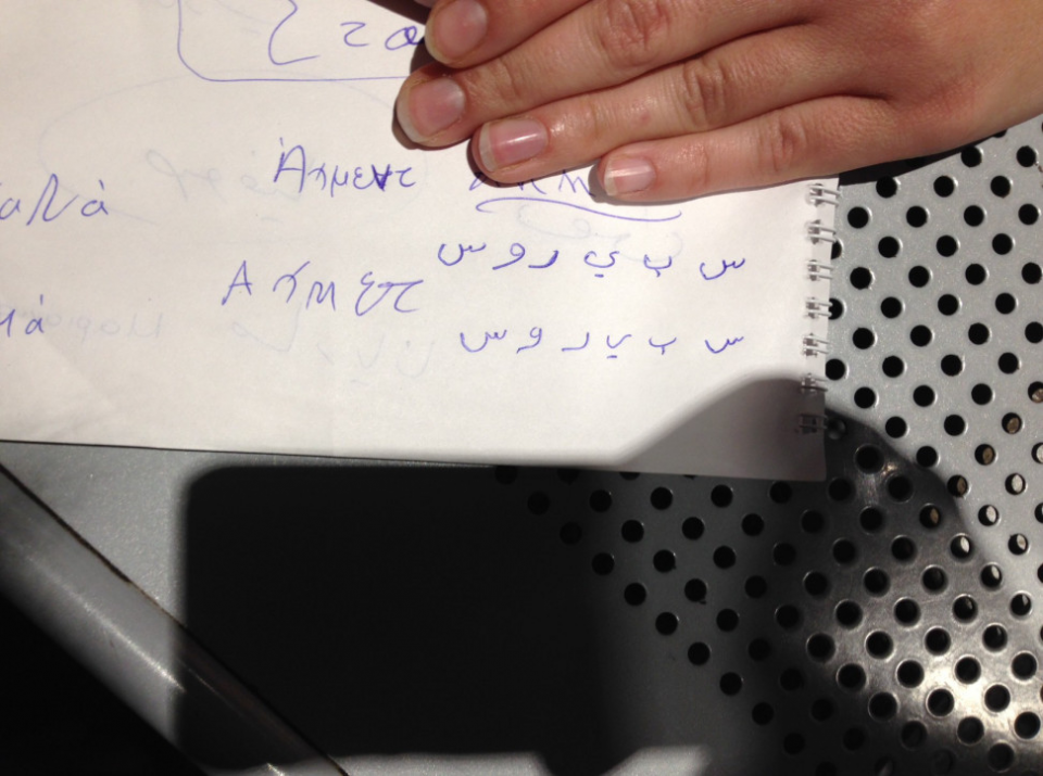 Σας γράφω και έχω μέσα μου έναν καινούριο κόσμο. Ο Μοχάμεντ και ο Μοχάμεντ και ο Άχμεντ και η Γιουσρα και ο Σαλάχ και ο Άχμεντ και τα πιτσιρίκια που αγαπάνε το Βαγγέλη και ένα σωρό άνθρωποι. Σας γράφω γιατί το ζήτημα είναι τόσο προσωπικό όσο είναι γενικό κι αόριστο. Είναι οι πρόσφυγες γενικά στη λάσπη της Ειδομένης και είναι η Καουσέρ συγκεκριμένα που κρυώνει στα Τρίκαλα. Σας γράφω γιατί έχω στο στομάχι μου την πιο τεράστια και ελαφριά πέτρα του πλανήτη. Είμαι σε μόνιμη αμηχανία, ντρέπομαι και αγχώνομαι. Αλλά βέβαια, γελάω, διασκεδάζω, ανταλλάζω περίεργες πληροφορίες. Και μαθαίνω. Μαθαίνω ότι το γάλα είναι χαλίμπ και ότι το χαλίμπ είναι γάλα. Μαθαίνω ότι ο Γκασάν ήταν ράφτης. Μαθαίνω ότι το Χαλέπι ήταν πολύ όμορφο.