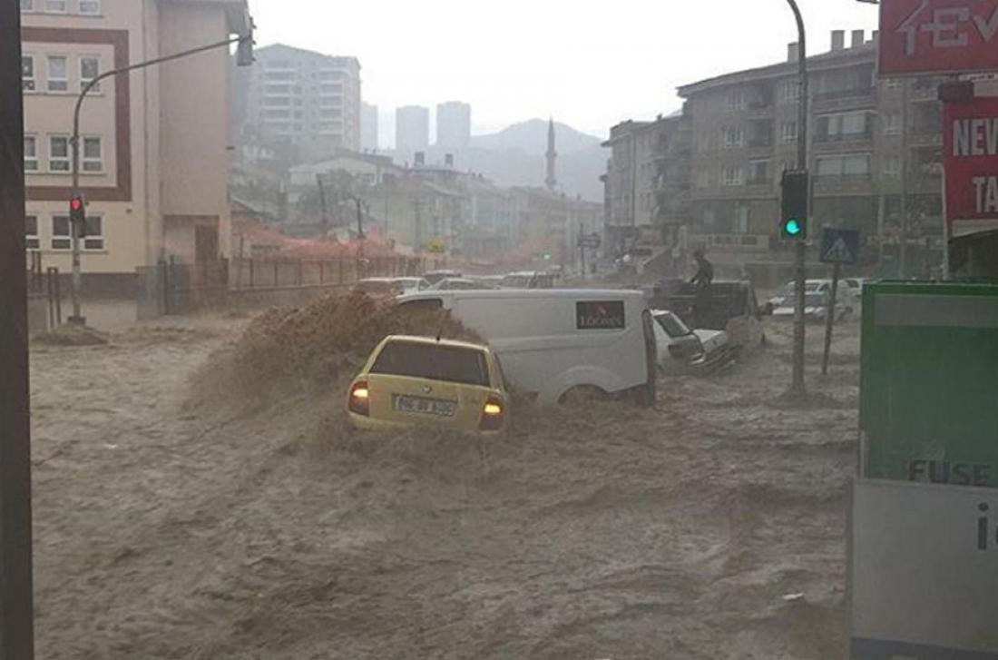 Το νερό της πλημμύρας παρέσυρε πολλά οχήματα που βρέθηκαν στον δρόμο του επί της λεωφόρου Νεσέτ Ερτάς, όπου ένας πολίτης εγκλωβίστηκε, αλλά τελικά κατάφερε να σωθεί.