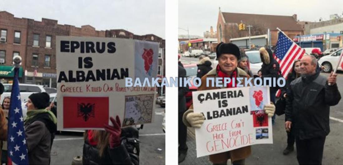 Όπως φαίνεται στο βίντεο, οι Αλβανοί διαμαρτύρονται μπροστά από την ελληνική οργάνωση στο Μπρούκλιν.