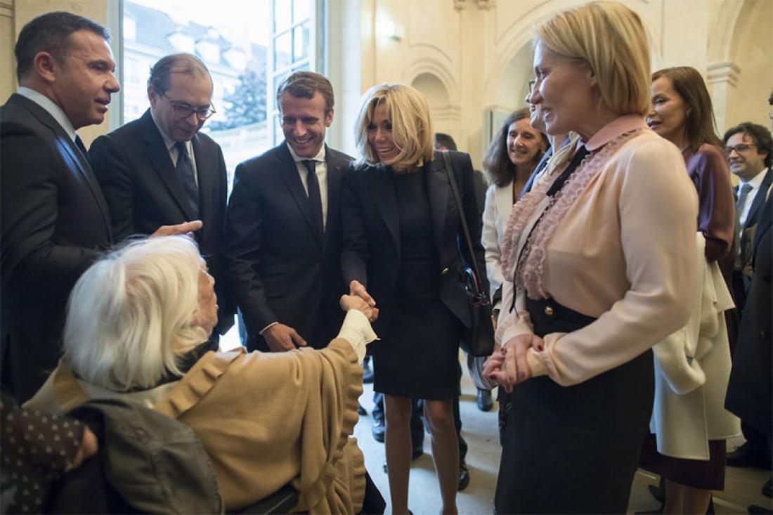 Η 82χρονη Μάγια συνομίλησε για αρκετή ώρα με το προεδρικό ζεύγος, με τον κ. Μακρόν να ακούει με προσοχή όσα έλεγε η ηλικιωμένη γυναίκα.