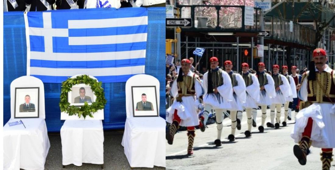 Στην παρέλαση αποθεώθηκαν από τον κόσμο που είχε κατακλύσει την 5th Avenue οι εύζωνες της προεδρικής φρουράς και όταν έφτασαν μπροστά από την εξέδρα των επισήμων τηρήθηκε ενός λεπτού σιγή στη μνήμη του πιλότου Γιώργου Μπαλταδώρου που έχασε τη ζωή του στο Αιγαίο, όταν έπεσε με το Mirage 2000-5 στα ανοιχτά της Σκύρου.