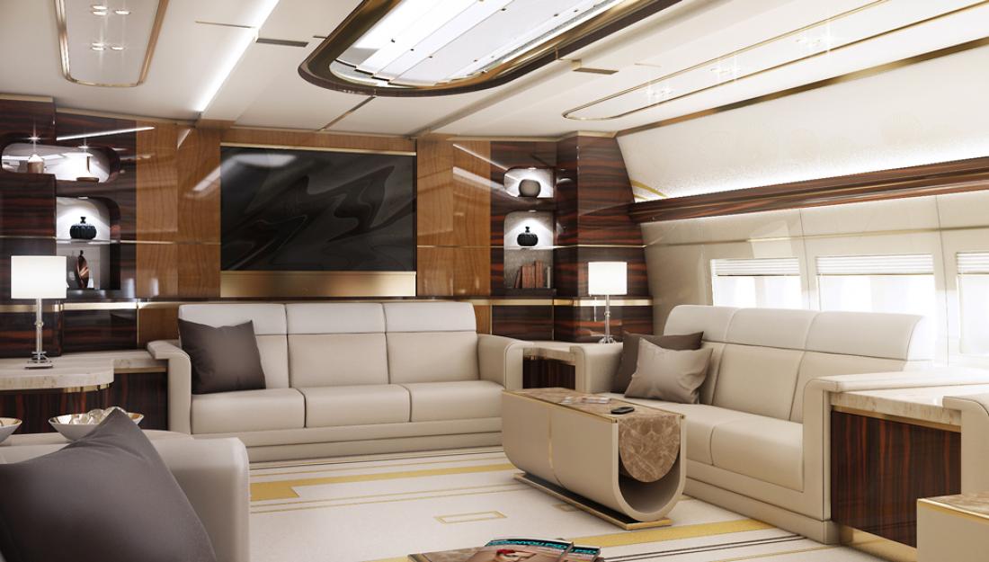 Στους δύο ορόφους του αεροσκάφους υπάρχουν σαλόνια και γραφεία, όλα πολυτελή επίπλωση και σύμφωνα με τους κανόνες ασφαλείας.