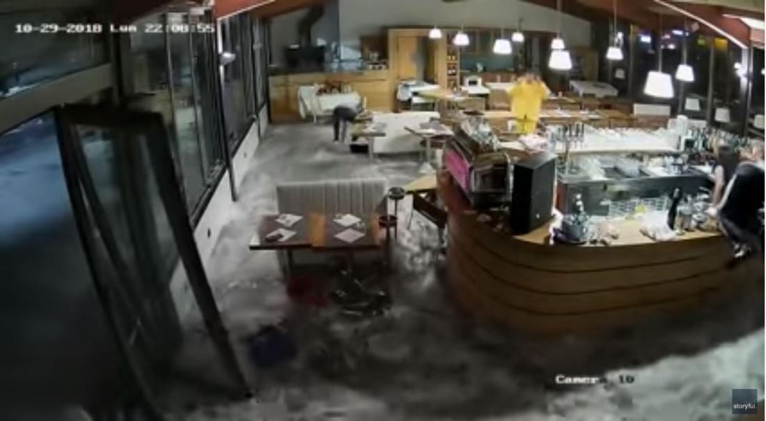 Δείτε το συγκλονιστικό βίντεο από κάμερες ασφαλείας που κατέγραψε ένα κύμα να διαλύει ένα εστιατόριο στη Γένοβα παρασύροντας υλικά και εργαζόμενους, τραυματίζοντας ελαφρά την ιδιοκτήτρια του εστιατορίου.