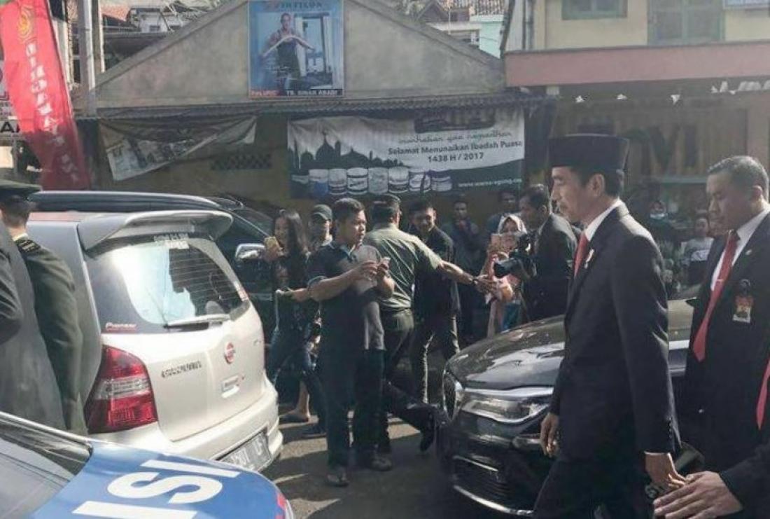 Αφού περίμενε επί μισή ώρα στο αυτοκίνητό του, ο πρόεδρος της Ινδονησίας «αποφάσισε ότι θα περπατήσει» μέχρι το σημείο της τελετής, διευκρίνισε ένας φρουρός του, ο Ίλι Ντάσιλι.