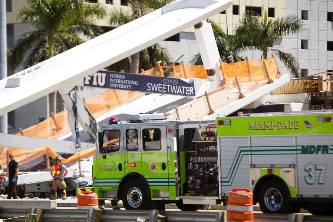 Η πεζογέφυρα αυτή βάρους 950 τόνων αποσκοπούσε να συνδέσει το Διεθνές Πανεπιστήμιο της Φλόριντα με τις εστίες των φοιτητών. Τουλάχιστον 8 αυτοκίνητα παγιδεύτηκαν κάτω από τα ερείπια της πεζογέφυρας, η οποία κατέρρευσε χθες το βράδυ πάνω σε έναν αυτοκινητόδρομο έξι λωρίδων.