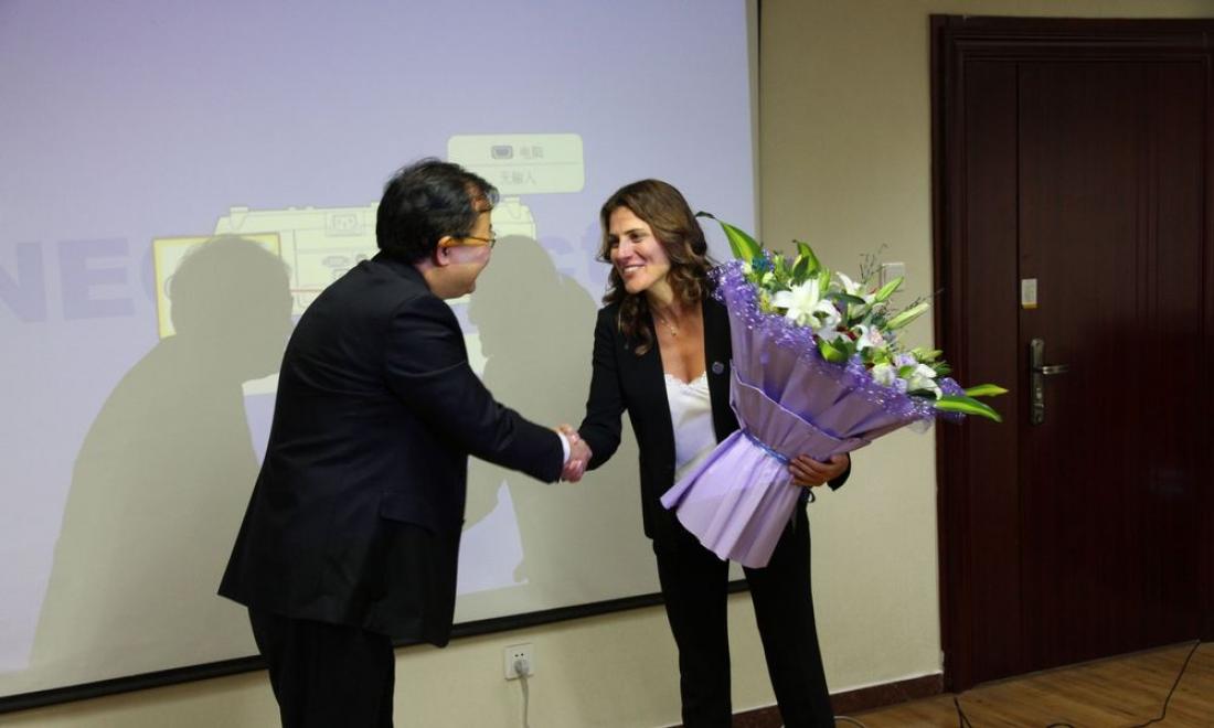 Στο πλαίσιο της τριήμερης επίσκεψής της στο Πανεπιστήμιο του Πεκίνου ως προσκεκλημένης από τη διοίκησή του, η κ. Μπαζιάνα έδωσε επιστημονική διάλεξη προς τους καθηγητές και τους φοιτητές του Πανεπιστημίου του Πεκίνου, είχε συναντήσεις με τον Πρύτανη και τη διοίκηση, τους καθηγητές και τους ερευνητές του Πανεπιστημίου, ενώ επισκέφθηκε εταιρείες μεταφοράς τεχνολογίας του Πανεπιστημίου.