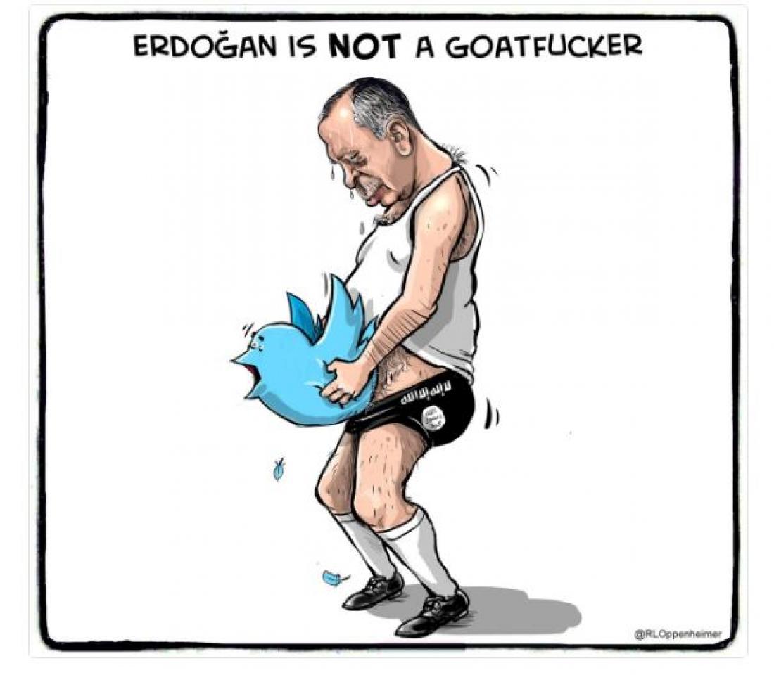 Την οργή του Ερντογάν προκάλεσε σκίτσο Ολλανδού σκιτσογράφου στο οποίο απεικονίζεται να «βιάζει» το μπλε πουλί, το λογότυπο του twitter, φορώντας ένα εσώρουχο στο οποίο απεικονίζεται η σημαία του Ισλαμικού Κράτους.