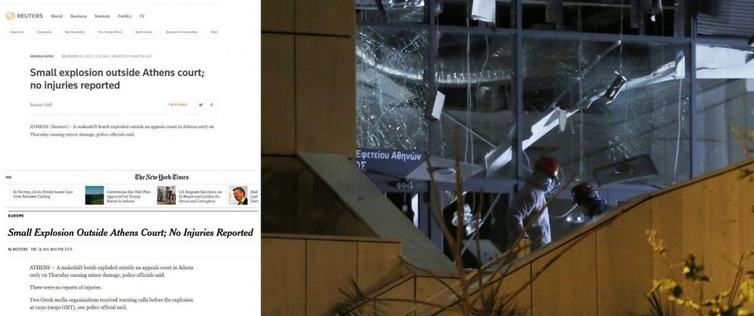 Το γύρω του κόσμου κάνει η είδηση για την έκρηξη βόμβας στο Εφετείο Αθηνών