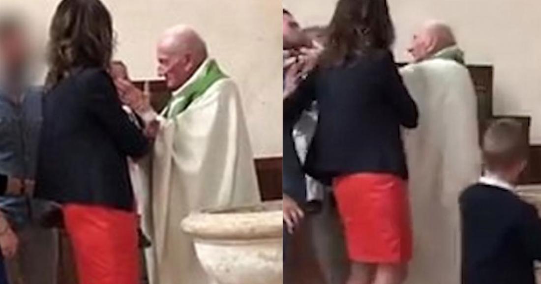 Ο εξοργισμένος πατέρας αμέσως του πήρε το παιδί από τα χέρια, με τη μητέρα να έχει μείνει εμβρόντητη από την απίστευτη συμπεριφορά του ιερέα. Δεν είναι γνωστό που έγινε το περιστατικό αλλά η λειτουργία τελούνταν στα γαλλικά. Στην αρχή του βίντεο φαίνεται η νονά του μικρού αγοριού να κρατά στην αγκαλιά της το παιδί και δίπλα της να στέκονται οι γονείς του.