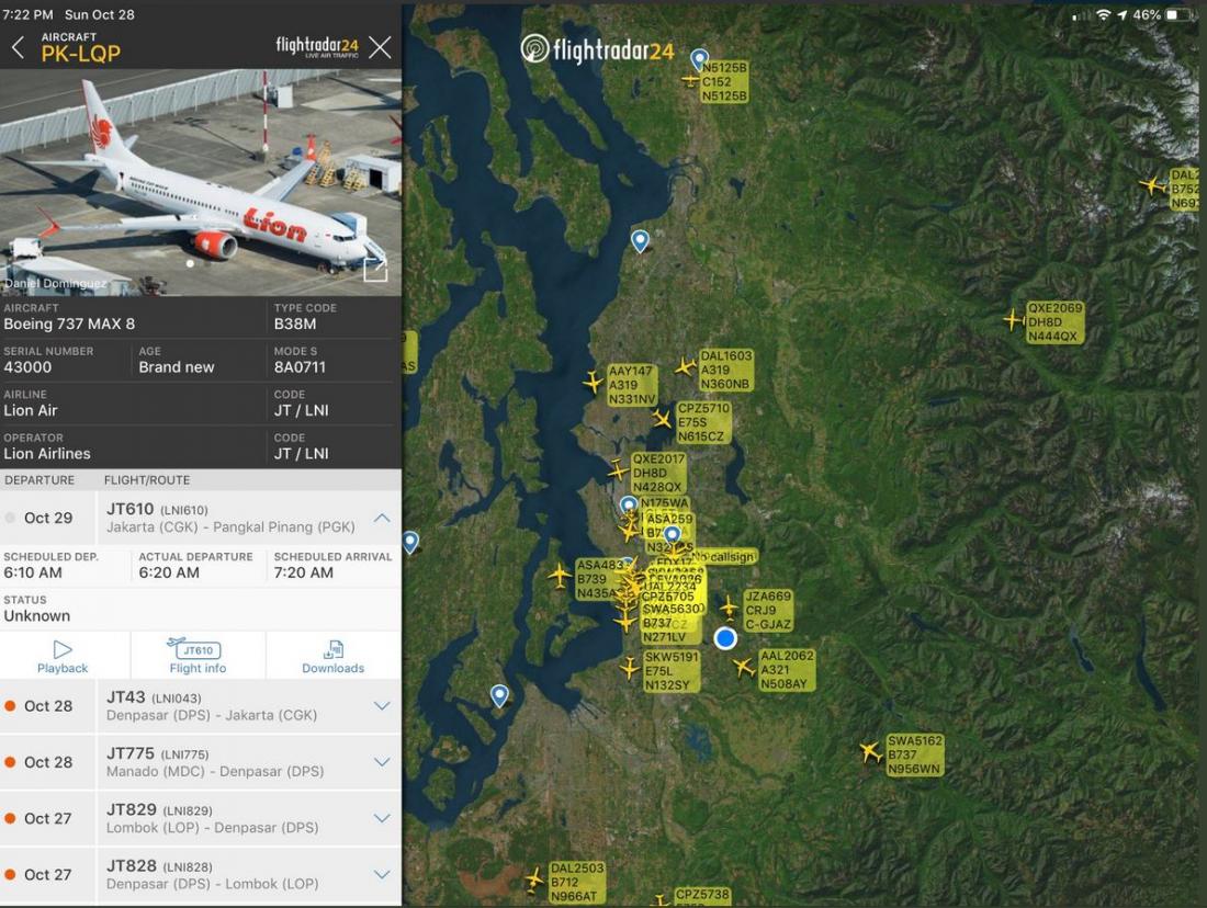 Το αεροσκάφος της Lion Air, το οποίο κατέπεσε και συνετρίβη στην Ινδονησία χθες Δευτέρα πετούσε αλλοπρόσαλλα την προηγούμενη ημέρα όταν προέκυψε σε αυτό ένα "τεχνικό πρόβλημα", σύμφωνα με στοιχεία της Flightradar24 (Σ.τ.Σ: της σουηδικής διαδικτυακής υπηρεσίας που παρέχει πληροφορίες πτήσης εμπορικών αεροσκαφών σε πραγματικό χρόνο σε έναν χάρτη).