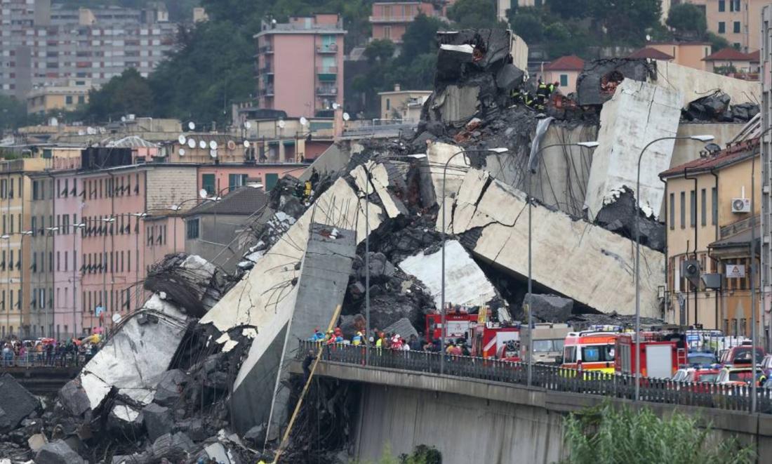 Περίπου 80 μέτρα της οδογέφυρας Μοράντι κατέρρευσαν από ύψος περίπου 50 μέτρων σ' έναν ποταμό, καθώς και σε σιδηρογραμμές και κτίρια. Η κατάρρευση σημειώθηκε γύρω στις 11:30 (τοπική ώρα, 12:30 ώρα Ελλάδας) στη διάρκεια καταρρακτώδους βροχόπτωσης, ανακοινώθηκε από την τοπική πυροσβεστική υπηρεσία.