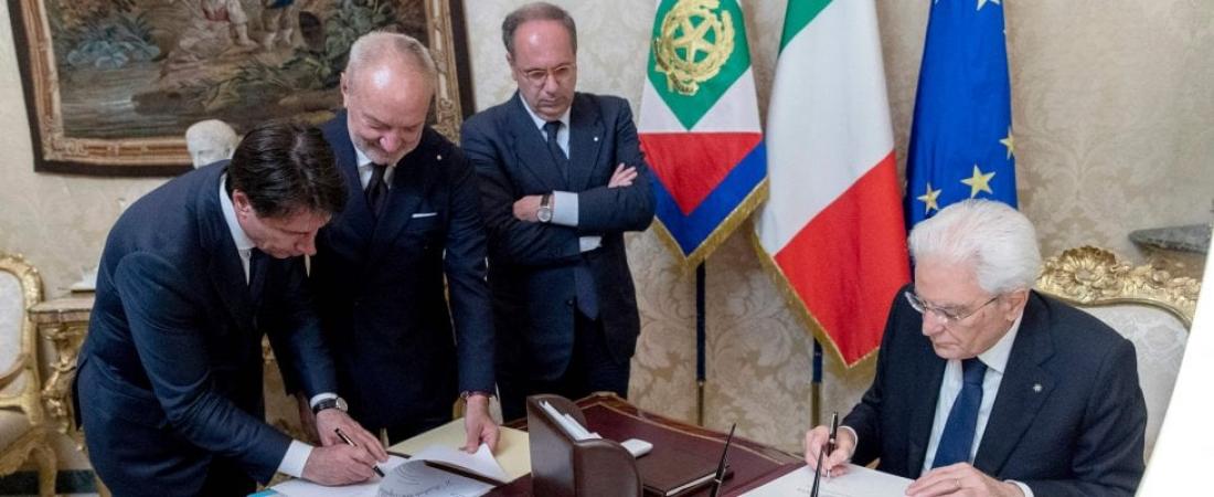 Έπειτα από σχεδόν τρεις μήνες διαπραγματεύσεων και ανατροπών χωρίς προηγούμενο ακόμη και σε μια χώρα οδυνηρά εξοικειωμένη με τις πολιτικές κρίσεις, το Κίνημα Πέντε Αστέρων (M5S) και η Λέγκα (άκρα δεξιά) κατέληξαν σε έναν συμβιβασμό με τον πρόεδρο Σέρτζο Ματαρέλα, ο οποίος απαιτούσε να λάβει εγγυήσεις για την παραμονή της Ιταλίας στην ευρωζώνη.