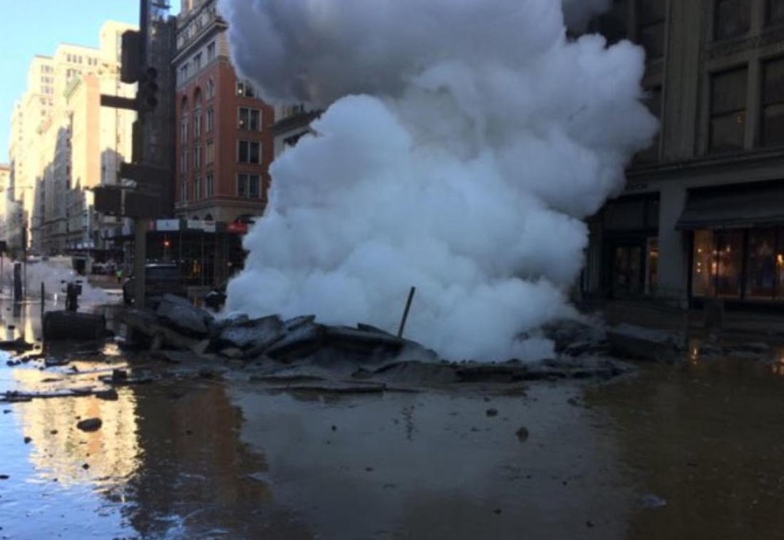 Περαστικοί ανήρτησαν εντυπωσιακές φωτογραφίες με στήλες ατμού να υψώνονται στον ουρανό πάνω από τη φημισμένη λεωφόρο κρύβοντας τη θέα σε ουρανοξύστες ορόσημα της αμερικανικής μεγαλούπολης όπως το Empire State Building καθώς οι δυνάμεις της πυροσβεστικής προσπαθούν να θέσουν υπό έλεγχο την κατάσταση.