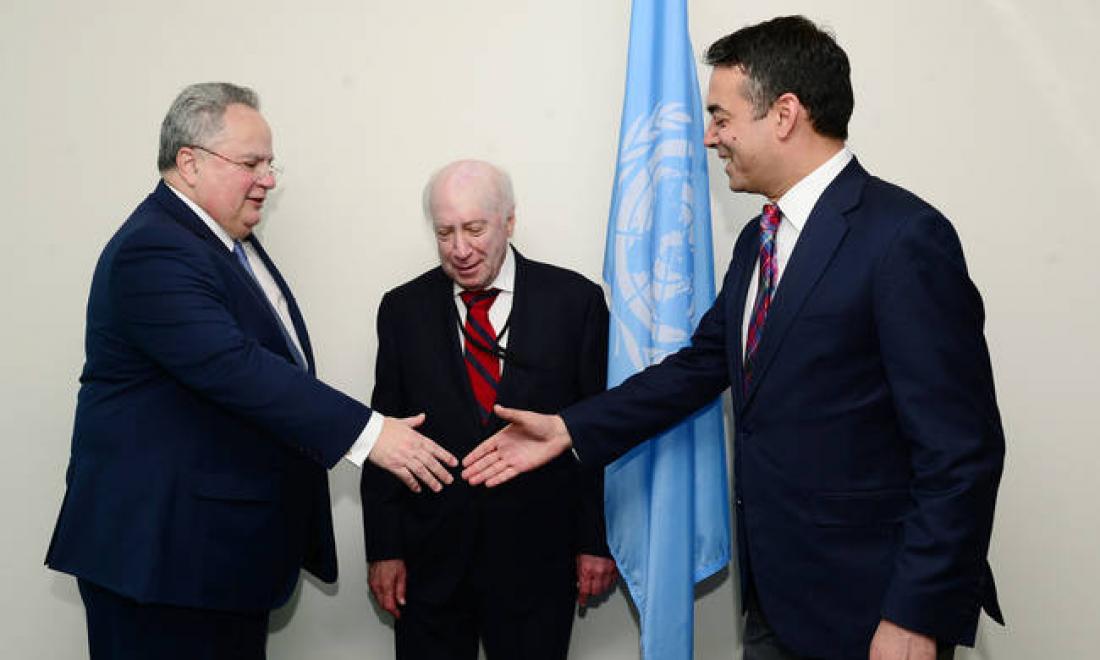 Με πυρετώδεις ρυθμούς συνεχίζονται και σήμερα στη Νέα Υόρκη οι διαπραγματεύσεις μεταξύ Νίκου Κοτζιά και Νικολά Ντιμιτρόφ για το ονοματολογικό, παρουσία του ειδικού διαμεσολαβητή του ΟΗΕ, Μάθιου Νίμιτς.
