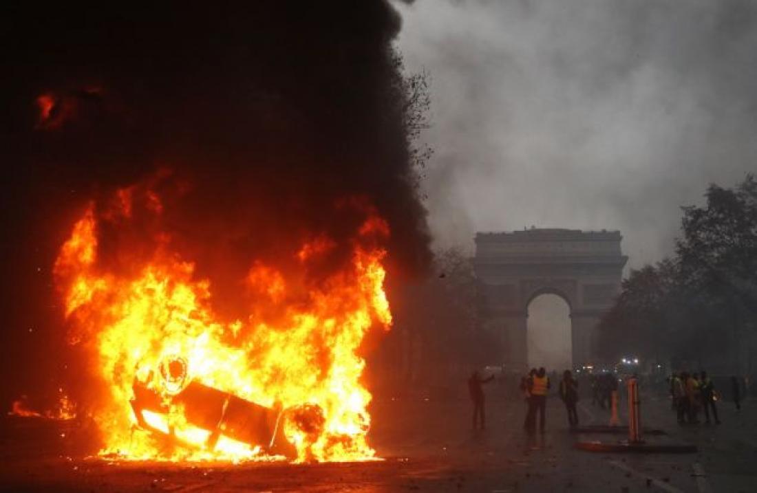 Σε πεδίο μάχης έχει μετατραπεί το κέντρο της γαλλικής πρωτεύουσας, με πολλά αυτοκίνητα να έχουν παραδοθεί στις φλόγες, όπως και ένα κτίριο κοντά στα Ηλύσια Πεδία, ενώ η βία εξαπλώνεται με την αστυνομία να αδυνατεί ακόμη και αυτή την ώρα να θέσει την κατάσταση υπό έλεγχο.