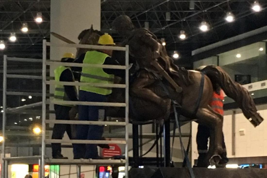 Απομακρύνθηκε αργά το βράδυ της Τετάρτης το άγαλμα του Μεγάλου Αλεξάνδρου, έφιππου στον Βουκεφάλα, που βρισκόταν στην αίθουσα αφίξεων του αεροδρομίου των Σκοπίων.