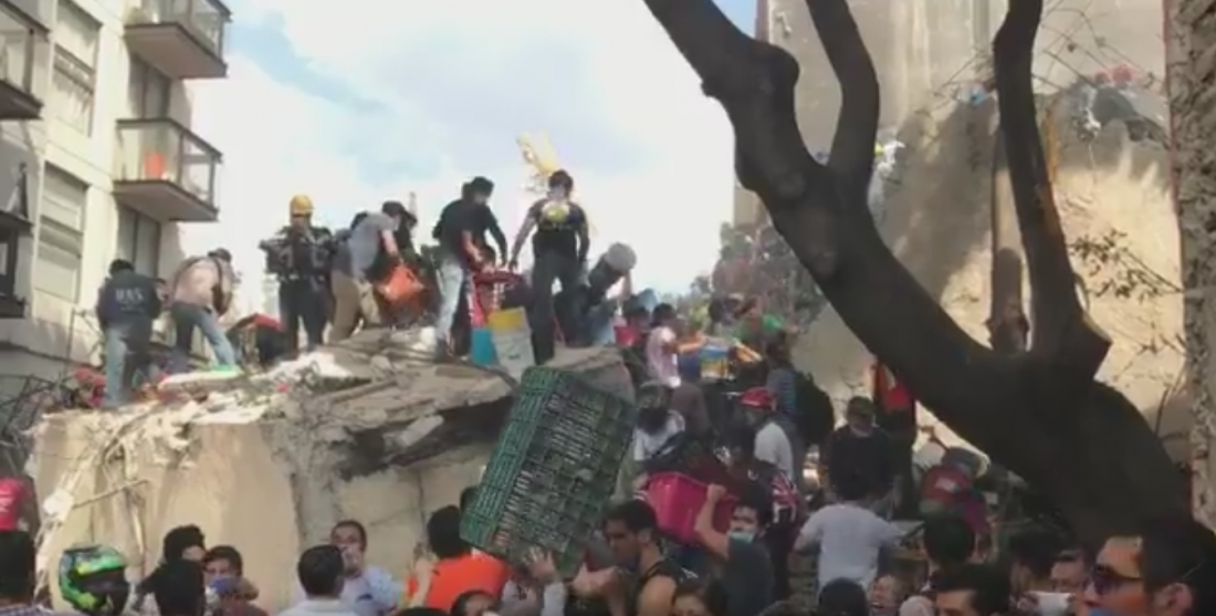 «Μας είπαν ότι εντόπισαν ζώνες όπου υπάρχουν (άνθρωποι) ζωντανοί (…) τα σκυλιά επιβεβαίωσαν ότι υπάρχουν ενδείξεις ζωής», είπε στο Γαλλικό Πρακτορείο η Πάολα Σολόριο, 35 ετών, που περιμένει από την Τρίτη νέα για τρεις συγγενείς της που παγιδεύτηκαν όταν η πολυκατοικία κατέρρευσε. Αλλά μερικές ώρες αργότερα, ένας γερανός άρχισε να σηκώνει τεράστιους όγκους μπετόν, μπροστά σε οικογένειες που θρηνούσαν.