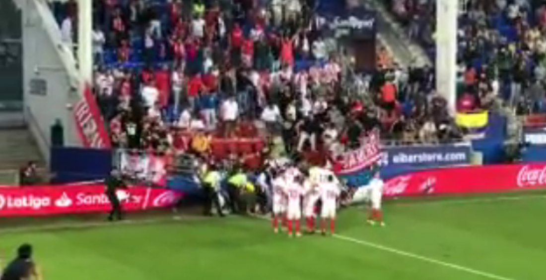 Το περιστατικό συνέβη στον αγώνα Εϊμπάρ-Σεβίλλη για το ισπανικό πρωτάθλημα, την ώρα που οι οπαδοί της Σεβίλλης πανηγύριζαν για γκολ της ομάδας τους.