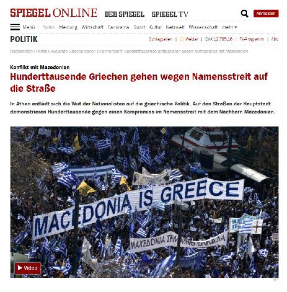 Στο άρθρο του ιστότοπου αναφέρεται ότι δεκάδες χιλιάδες άνθρωποι συγκεντρώθηκαν στο Σύνταγμα, από κάθε γωνιά της χώρας και ακόμα και από το εξωτερικό, προτρέποντας την κυβέρνησή τους να απορρίψουν τον συμβιβασμό σε μια «μακρά κόντρα» με την ΠΓΔΜ.