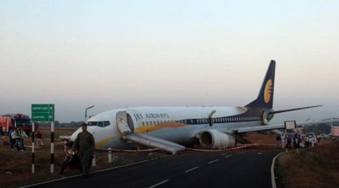 της εταιρείας Jet Airways, με 161 επιβάτες, έχασε τον διάδρομο απογείωσης και κατέληξε σε χωράφι.