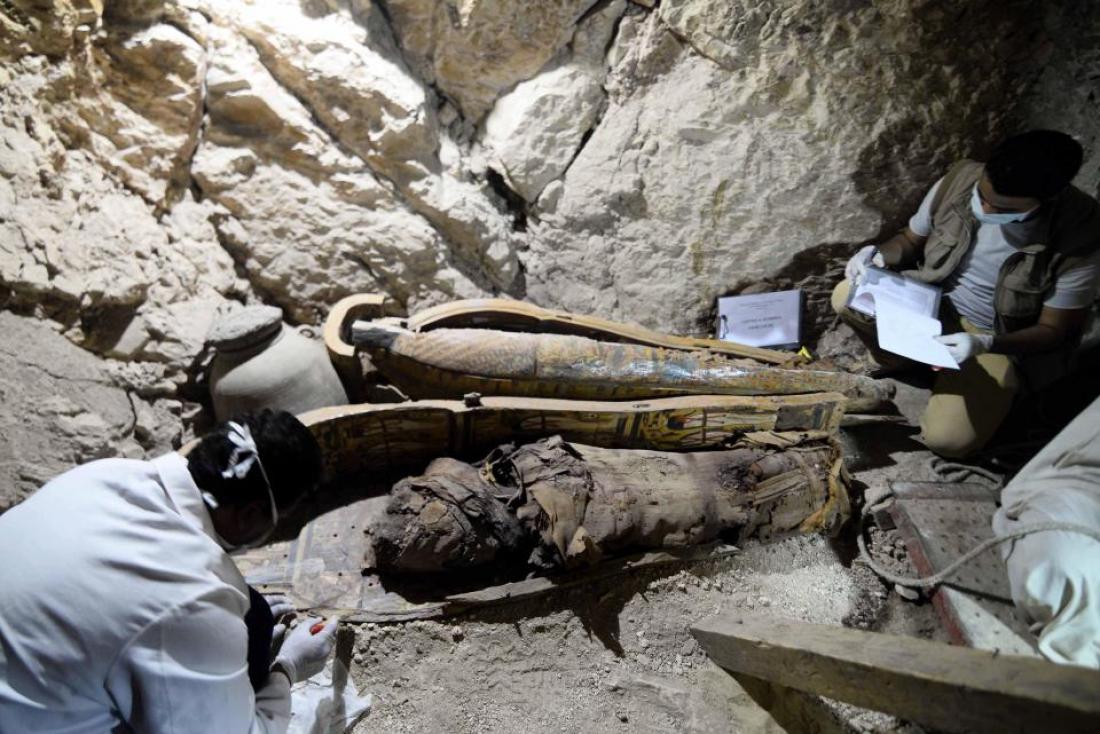 Έξι μούμιες, ξύλινες σαρκοφάγοι σε ζωηρά χρώματα, χίλια ταφικά αγαλματίδια: αρχαιολόγοι έκαναν μεγάλες ανακαλύψεις ερευνώντας τάφο της φαραωνικής εποχής στη νότια Αίγυπτο, ανακοίνωσε σήμερα το υπουργείο Αρχαιοτήτων.