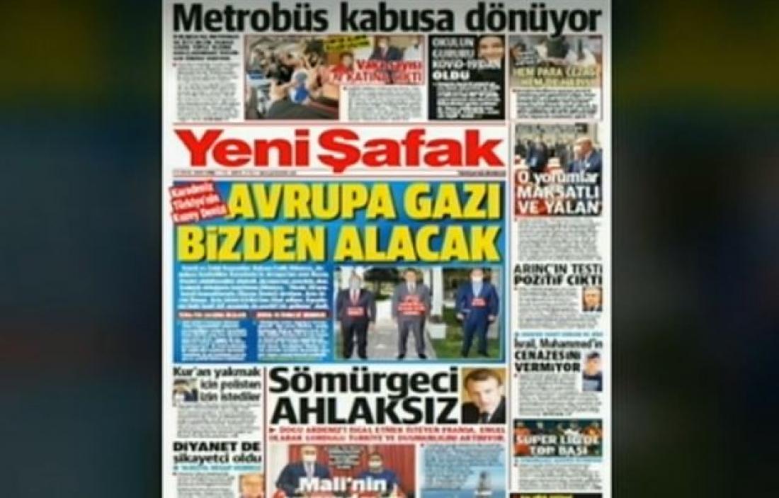 Ενδεικτικό είναι το πρωτοσέλιδο της Γενί Σαφάκ που είναι άλλωστε και το δεξί χέρι του Ερντογάν και αναφέρει «Η Ευρώπη θα αγοράζει αέριο από εμάς », υπονοώντας εμμέσως πλην σαφώς ότι η Τουρκία θα συνεχίσει τις προκλήσεις στην Ανατολική Μεσόγειο.