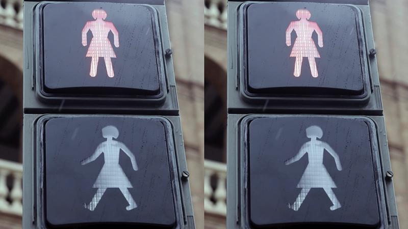 Σε δέκα φωτεινούς σηματοδότες για τη ρύθμιση της κυκλοφορίας πεζών σε μία από τις πιο πολυσύχναστες διασταυρώσεις της πόλης οι φιγούρες είναι πλέον γυναίκες με φόρεμα για δοκιμαστική περίοδο 12 μηνών.