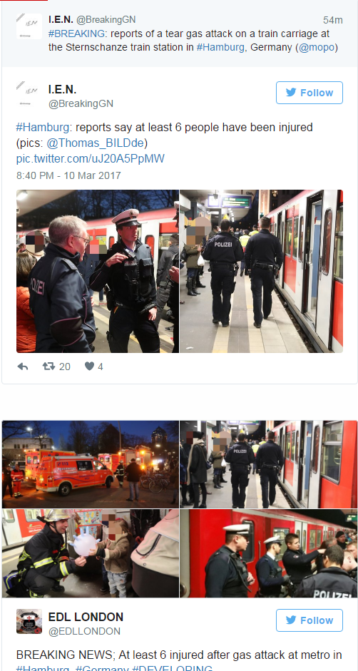 Αυτή τη φορά υπάρχουν αναφορές για επίθεση με αέριο στον σταθμό του τρένου Sternschanze.