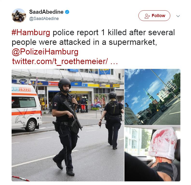 Αμβούργο: Ένας άνδρας σκόρπισε τον τρόμο σε σούπερ μάρκετ του Αμβούργου όταν σκότωσε έναν άνδρα και τραυμάτισε πολλούς με μαχαίρι.