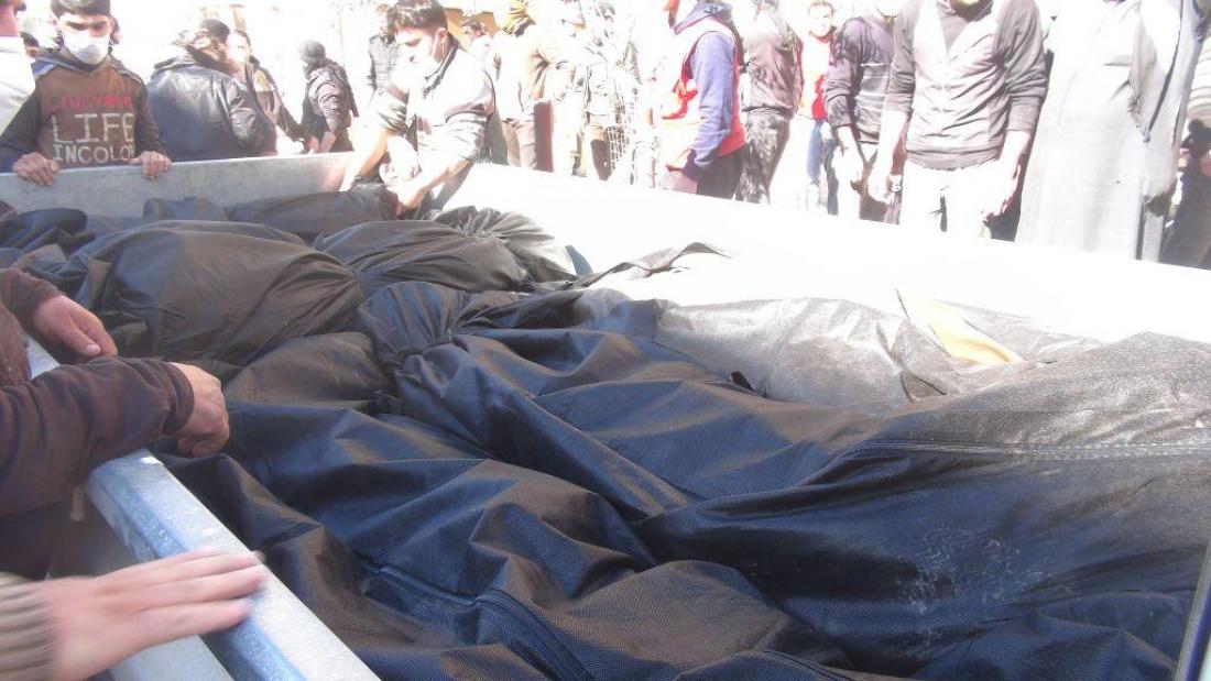 Σύμφωνα με την μη κυβερνητική οργάνωση Συριακό Παρατηρητήριο Ανθρωπίνων Δικαιωμάτων «μεταξύ των θυμάτων υπάρχουν επίσης 17 γυναίκες και ο αριθμός των νεκρών είναι πιθανόν να αυξηθεί, διότι υπάρχουν αγνοούμενοι». Σύμφωνα με τους γιατρούς, τα συμπτώματα που εμφανίσθηκαν στα θύματα είναι αντίστοιχα με τα συμπτώματα που ακολουθούν χημική επίθεση, κυρίως διεσταλμένες κόρες, σπασμοί και αφρός στο στόμα.