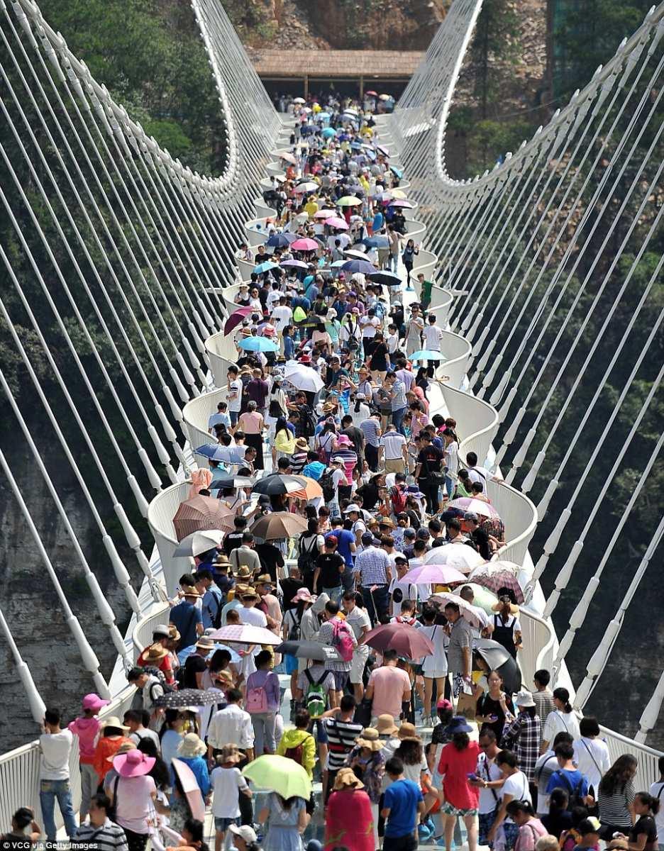 Μόνο 8.000 επισκέπτες είναι δεκτοί την ημέρα πάνω στη γέφυρα, σύμφωνα με το Νέα Κίνα. Έτσι οι τουρίστες πρέπει να κλείνουν μια ημέρα νωρίτερα το εισιτήριό τους, που κοστίζει 138 γιουάν (18 ευρώ).