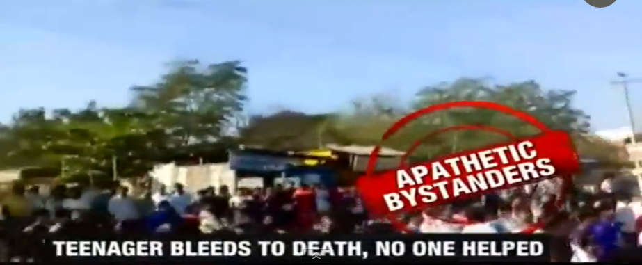 Ένας Ινδός έφηβος χαροπάλευε αιμόφυρτος στο έδαφος αφού είχε χτυπηθεί από ένα λεωφορείο σήμερα το πρωί, με τους παρευρισκόμενους να τον κοιτούν άπραγοι και να τον βιντεοσκοπούν, όπως ανέφερε το πρακτορείο ειδήσεων ANI, που συνεργάζεται με το πρακτορείο Ρόιτερς.