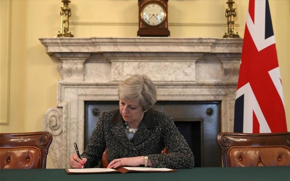 Η Βρετανίδα πρωθυπουργός Τερέζα Μέι υπέγραψε αργά χθες το βράδυ την επιστολή που θα υποβληθεί σήμερα στις Βρυξέλλες με την οποία θα ξεκινήσει η διαδικασία για την αποχώρηση της Βρετανίας από την Ευρωπαϊκή Ένωση.