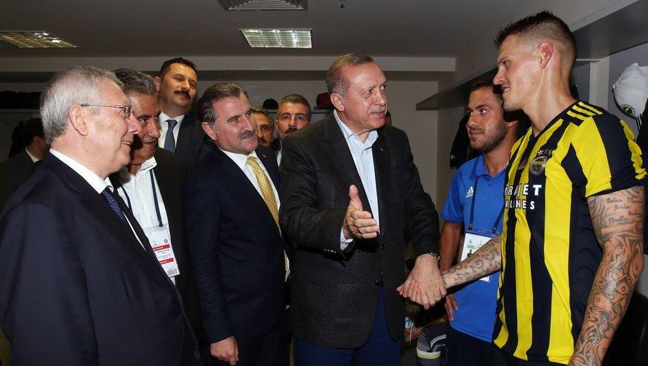 Ο Ταγίπ Ερντογάν κατέβηκε στα αποδυτήρια για να συγχαρεί την ομάδα του για το 1-1 που έφερε, ενώ έκανε και πλάκα στους ποδοσφαιριστές λέγοντας στον Οζάν Τουφάν ότι πρέπει να χάσει κανα κιλό ή σχολιάζοντας τα γκολ…