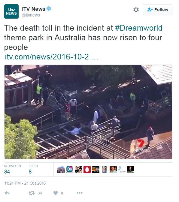 "Το Dreamworld εργάζεται με όσο τον δυνατόν ταχύτερο ρυθμό για να διαπιστώσει πώς συνέβη δυστύχημα", ανακοίνωσαν αξιωματούχοι του θεματικού πάρκου.