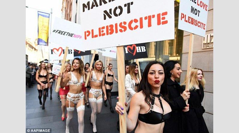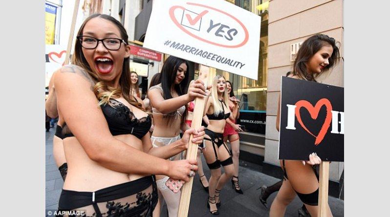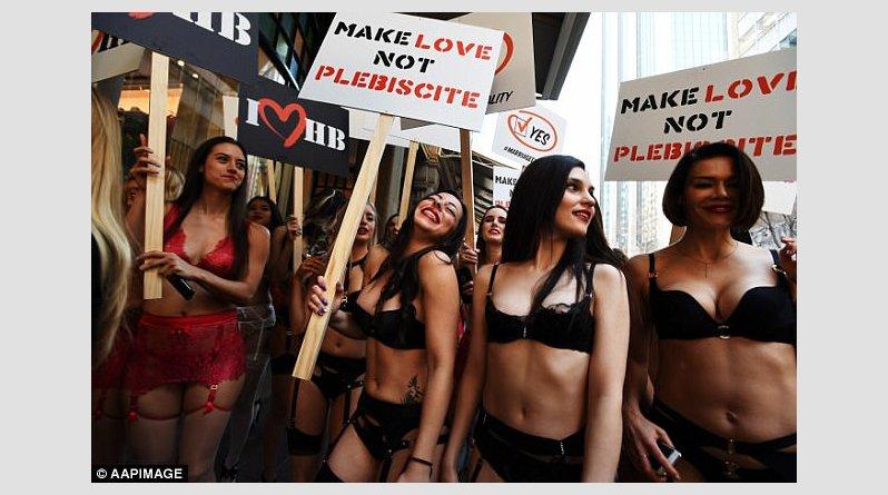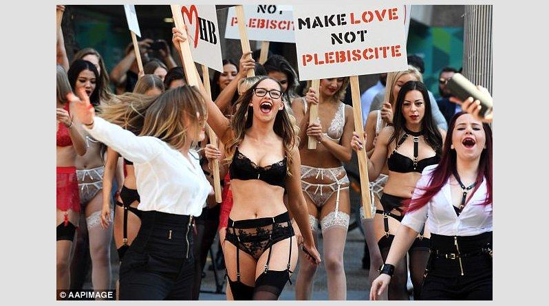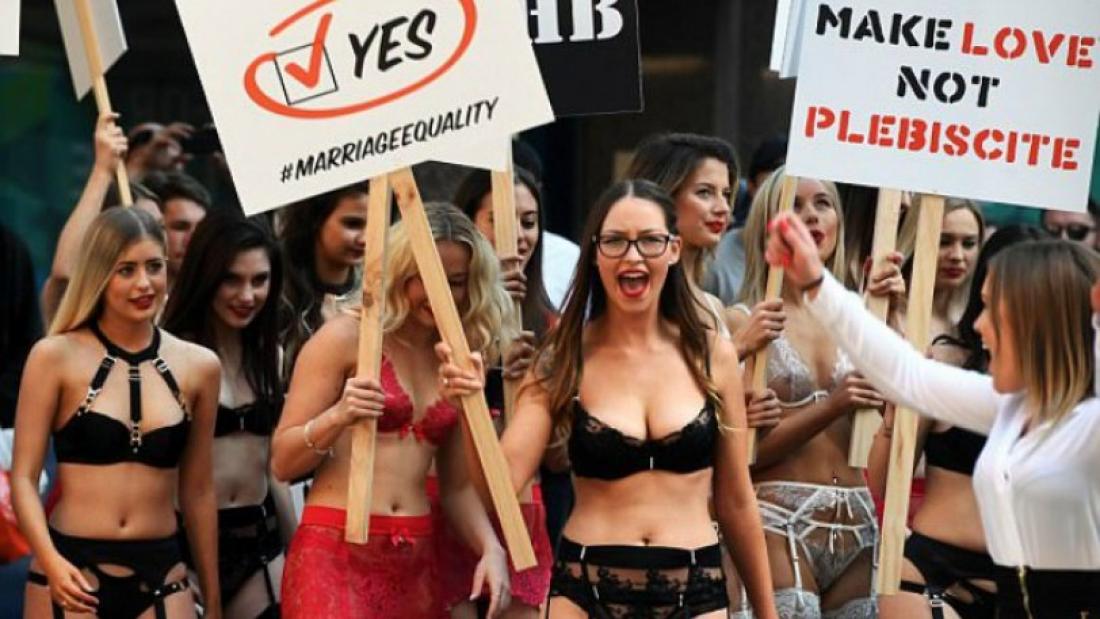 Με μαύρα, άσπρα και κόκκινα εσώρουχα αποφάσισαν να κατέβουν στους δρόμους λίγες μέρες πριν το δημοψήφισμα (24/8) που θα διεξαχθεί για τους γάμους των ζευγαριών του ίδιου φύλου.