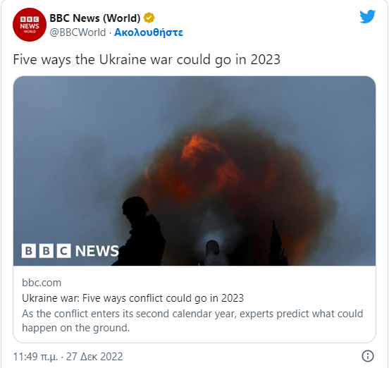 BBC: Πέντε σενάρια για την πορεία του πολέμου στην Ουκρανία το 2023