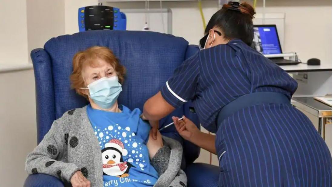 Η Μάργκαρετ Κίναν, μια 90χρονη γιαγιά από τη Βρετανία, έγινε ο πρώτος άνθρωπος στον κόσμο που έκανε το εμβόλιο της Pfizer κατά της Covid-19 εκτός του πλαισίου των δοκιμών, μετά την κλινική έγκρισή του.