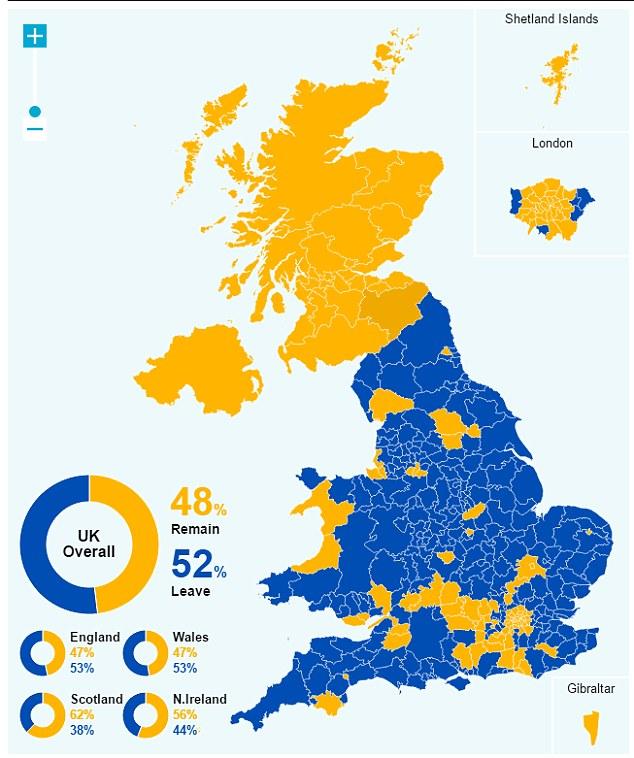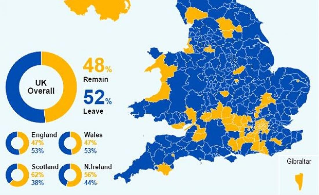 Τα αποτελέσματα του βρετανικού δημοψηφίσματος για την Ευρωπαϊκή Ένωση δείχνουν ένα Ηνωμένο Βασίλειο βαθιά διχασμένο γεωγραφικά, κοινωνικά και ηλικιακά.